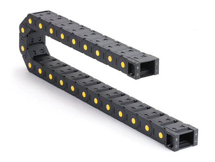 塑料拖鏈適用于數控機床 、加工中心 、自動化機械及生產線等各類機床 、機器人 、運輸機械、測量儀器 、搬運裝置以及其它驅動控制作為電線、電纜液 、氣軟管的防護裝置 ,可延長被保護的電線 、電纜 、液 、氣軟管的使用壽命 ,降低消耗 ,可大大改善機床、機械設備的電線 、電纜 、液 、氣軟管分布零亂的狀況 ,使之整齊 、規則地排列在一起 ,能增強機床 、機械設備的整體藝術造型效果。 ?。?)適合于使用在往復運動的場合,能夠對內置的電纜、油管、氣管、水管等起到牽引和保護的作用。 ?。?)拖鏈已被廣泛的應用于數控機床、拖鏈根據使用環境和使用要求的不同分為橋式拖鏈,全封閉的拖鏈,半封閉的拖鏈三種。塑料拖鏈的用途和特點電子設備、石材機械、玻璃機械、消防機械設備、超重運輸設備、門窗機械、注塑機、機械手、自動化的倉庫等。 ?。?)拖鏈的每一節都能打開,易于安裝和維修。運動時噪音低、耐磨,可高速運動。